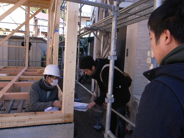 設計士は図面通りに建て方が進んでいるかを確認。設計上の変更が生じたところは現場監督に指示を出します。そして…