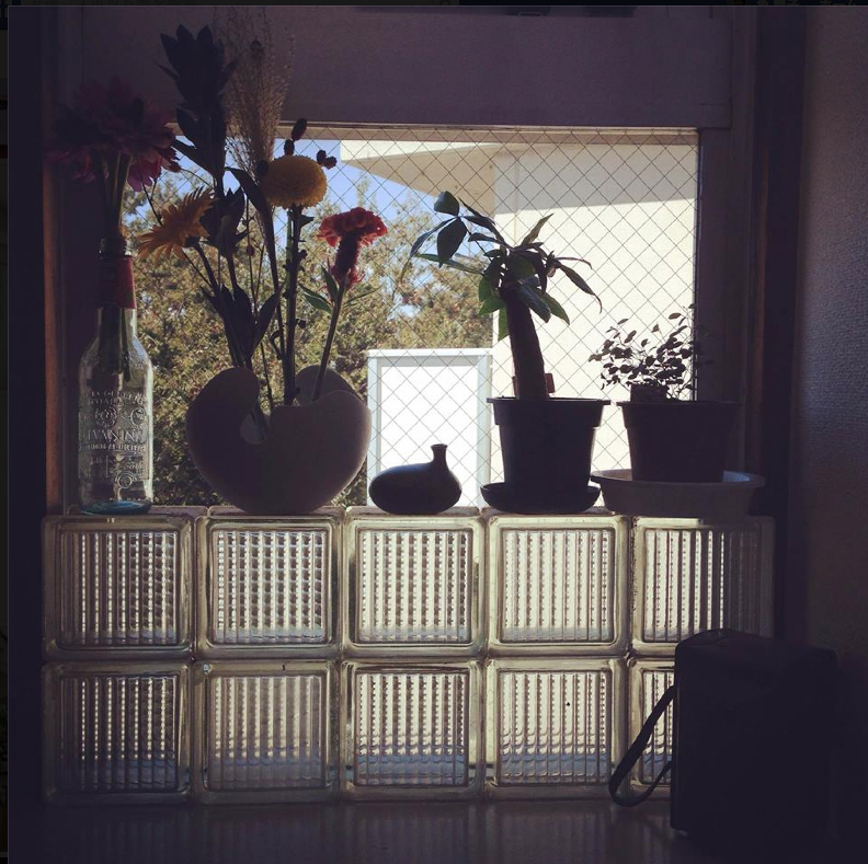 お持ち帰りいただいたガラスブロックで、窓際にディスプレイスペースをDIY。