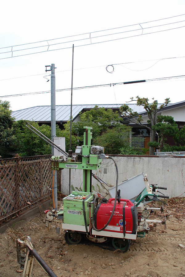 数日後、すっかり更地となったところで地盤調査を行いました。