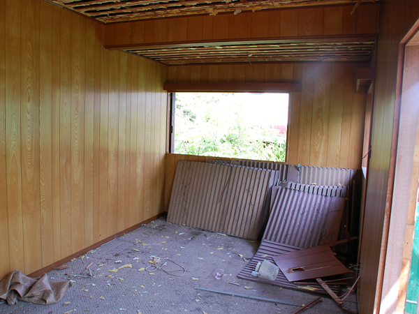 屋根材のコロニアルが剥がされたものが、山積みに。