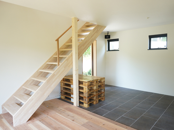 2階は仕切りのないワンルーム。リビング兼、寝場所として一体的に使う予定です。1階の「動」的な空間に対して、2階は「静」的な落ち着いた空間に。
