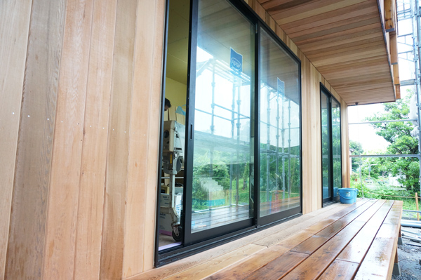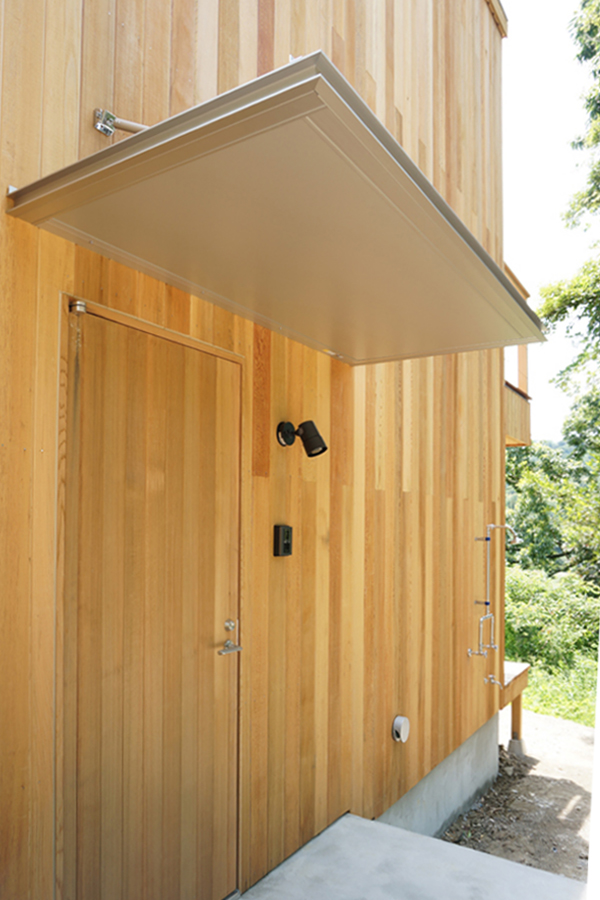 こちらも外壁と同じレッドシダー。耐久性、耐水性に優れているのが特徴。