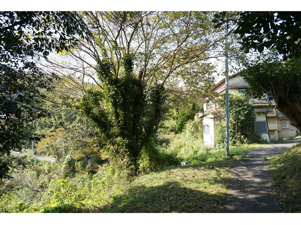 物件を横から見た感じ。ちなみに、右端に写っている小道をくだると、