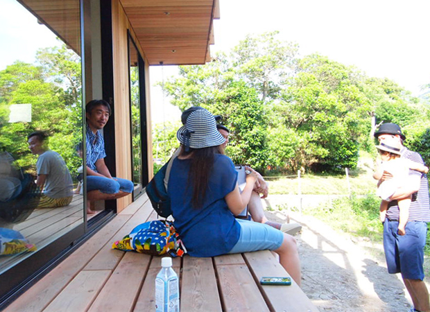 抜群のロケーションに広いお庭のあるW邸、オープンハウス当日も縁側スペースで気持よく過ごされる方がたくさんいらっしゃいました。海で遊んで、外でシャワーを浴びて、ビールを飲んで、縁側でごろんと昼寝、そんな休日の過ごし方を想像されて、建て主さんうらやましーの一言。最高ですね。