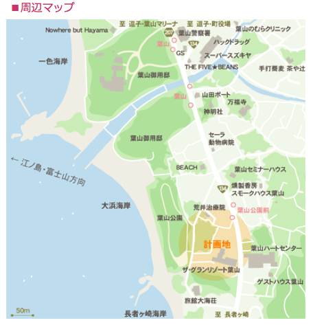 また、葉山公園前に5mの堤防があり、長者ヶ崎も防波堤代わりになるでしょう。