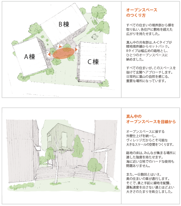 ヴィレッジスタイルだからこそ実現できる街並みに溶け込む