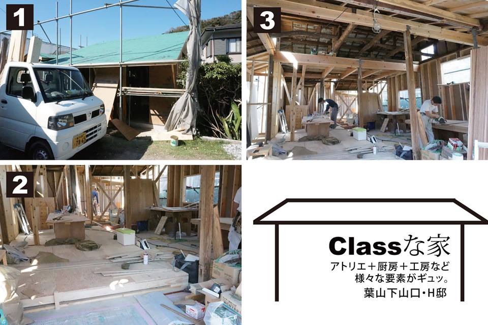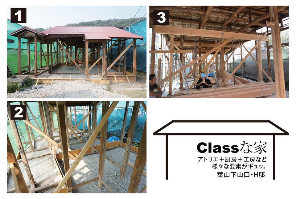 8月中旬、まさにスケルトン状態(1&2)。先日様子を見に行ったところ、骨組みの補強工事が行われていました(3)。太い柱が心強い。大工さん、ビシッと補強頼みます!アトリエ、厨房、工房など、これから徐々に「Classの家」の全貌が明らかに。進捗が楽しみです!