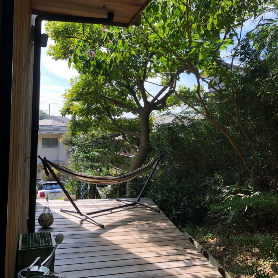 ウッドデッキにハンモックをかければ、そこはもう特等席。